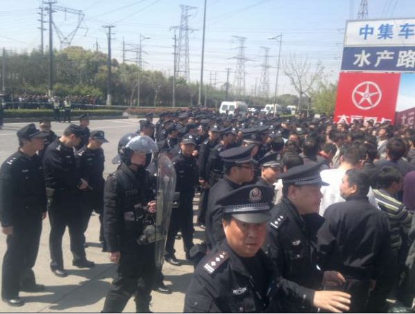 Hundreds truck drivers of containers industry are striking today, they protest the high tax on gas and other fees. One lady claimed to be dead but not confirmed. The strike ended in the afternoon. Only one media in China - CaiXinWang reported the strike.